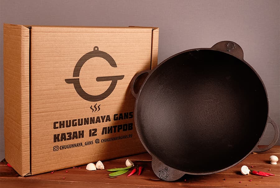 Благодаря специальным ножкам на дне, казан можно удобно ставить на ровную поверхность. Chugunnaya Gans – компания с собственным производством в России. Отличается тем, что продукция проходит ручную обработку, зачистку, шлифовку, воронение. За счет этого казан не нуждается в дополнительном очищении – полностью готов к использованию.
