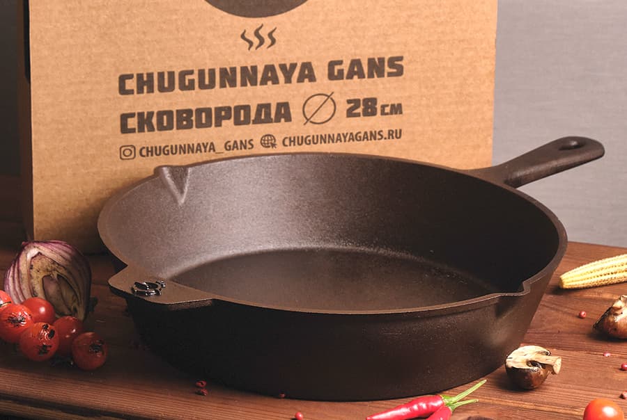Чугунная посуда премиального качества влияет на вкус блюд. Попробуйте приготовить цыленок табака, стейки, жаркое – заметите, как сохраняется сочность и тонкий аромат. Чугун не сушит продукты, а помогает именно жарить. Особенно рекомендуем такую сковородку тем, кто любит жаренные картошку с грибами и лучком. Толстые стенки сохраняют высокий градус тепла, поэтому блюда можно доготавливать до нужной кондиции. Chugunnaya Gans производит экологичную посуду из чистого чугуна без примесей. Собственное производство находится в России.