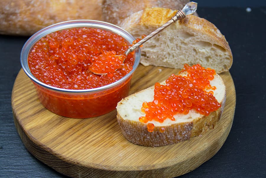 В рейтинге полезных икра кижуча (Oncorhynchus kisutch) занимает первое место. Деликатесный продукт для потрясающих завтраков и закусок в любой день, когда хочется праздничного настроения. Икра серебристого лосося небольшая по размеру, слегка горькая по вкусу и невероятная по большому содержанию минералов и витаминов, особенно D. Если включать в рацион, то можно повысить выработку серотонина и эндорфина – гормон радости. Тартар из лосося с огурцом и красной икрой, гречневые мини блины с икрой кижуча, картофельные латкес с творожным сыром – добавлять можно в самые разнообразные блюда!
