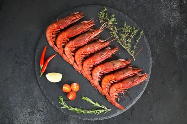 Карабинерос - крупная дикая креветка, которая выделяется среди прочих креветок своим насыщенным красным цветом. Мясо дикой креветки питательно и богато белком, обладает изысканным неповторимым сладким вкусом. Можно есть в сыром виде, добавлять в супы и жарить.