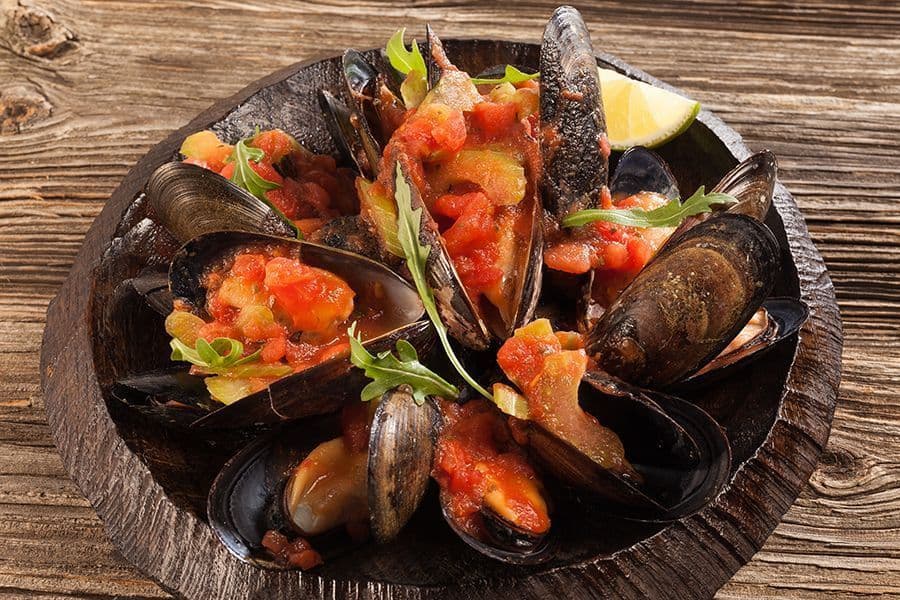 Мидии (Mytilus chilensis) уже отварены и готовы к употреблению – привлекательные моллюски из Чили нужно только разморозить. Изумительный вкус помогает раскрыть сок лимона, томатный или сливочный соус. Богаты витаминами, микро- и макроэлементами, ненасыщенными жирными кислотами Омега-3, содержат мало холестерина.