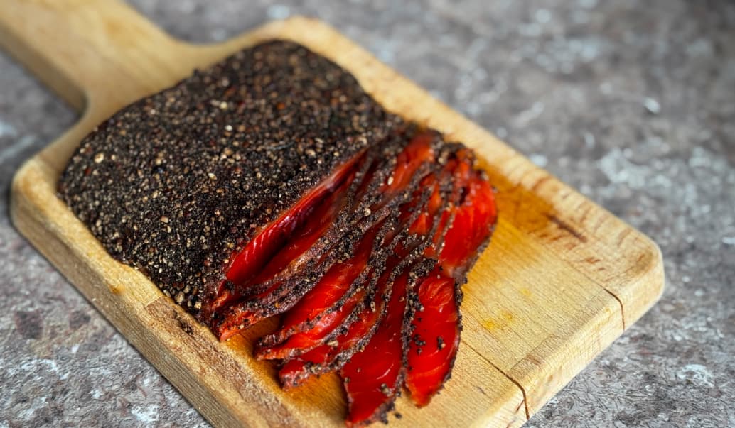 Для ценителей японской кухни. Филе нерки замариновано в соевом соусе со специями и лаймом, покрыто черным перцем и поджарено на сильном огне. Все, что Вам нужно — это разморозить продукт, тонко нарезать и подать в качестве основного блюда, которое будет идеально сочетаться с зеленью, авокадо и рисом, или сделать украшением праздничного стола в качестве холодной закуски.Замороженный продукт, готов к употреблению после размораживания.